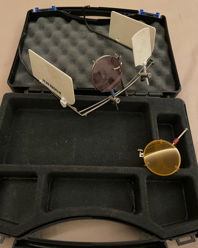 Knowbloch K1 frame with two coloured lenses and side blinders
