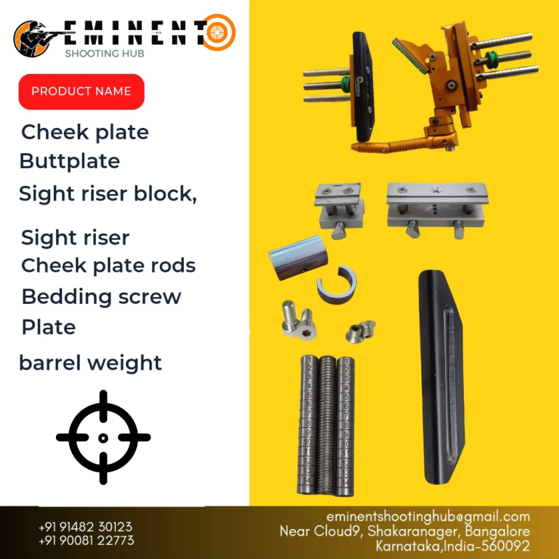 Stock available 1.Cheek plate 2.Buttplate 3.Sight riser block 4.Sight riser 5.Cheek plate rods Bedding screw Plate barrel weight